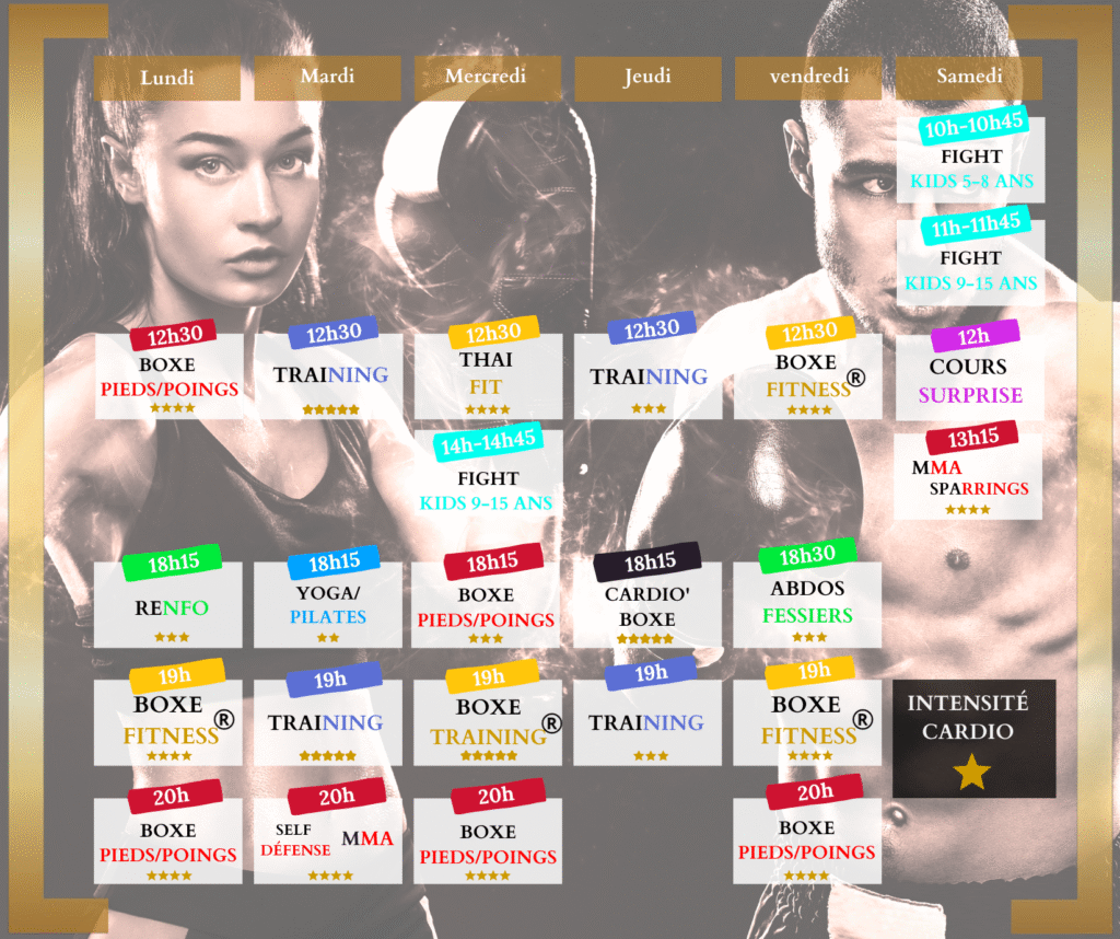 Boxe et combats encadrés pour progresser en technique et en confiance.